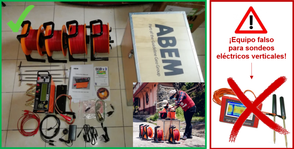 Los sondeos eléctricos verticales (SEV) se realizan con equipos especiales llamados RESISTIVÍMETROS para medir la resistividad aparente del terreno y generar un gráfico de resistividad real para interpretar el espesor de los estratos del subsuelo. Es importante que el estudio se realice por personal especializado en ciencias de la tierra (geólogos o geofísicos) y que el equipo sea especial para este tipo de estudio, ya que existen muchos equipos falsos que generan información errónea, a la cual no se le puede confiar la alta inversión que conlleva la perforación de un pozo mecánico. Es importante verificar que el resistivímetro a utilizar lleve 4 electrodos (2 de corriente y 2 de potencial) ya que los equipos falsos se componen únicamente de 2 varillas, de las cuales no es posible hacer una metodología de geofísica eléctrica.